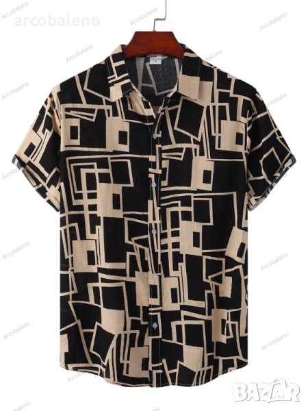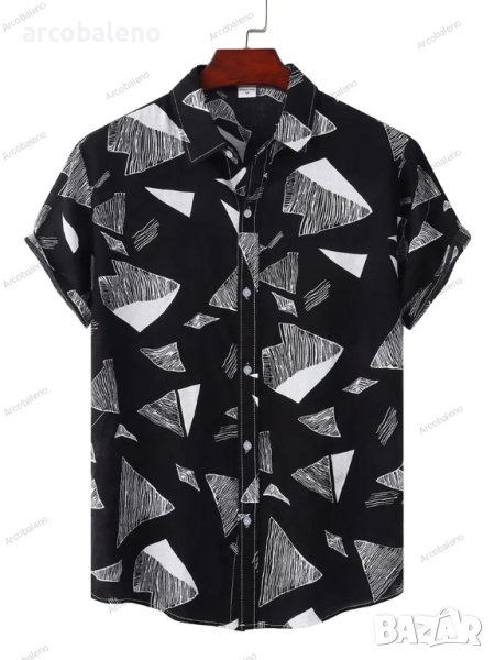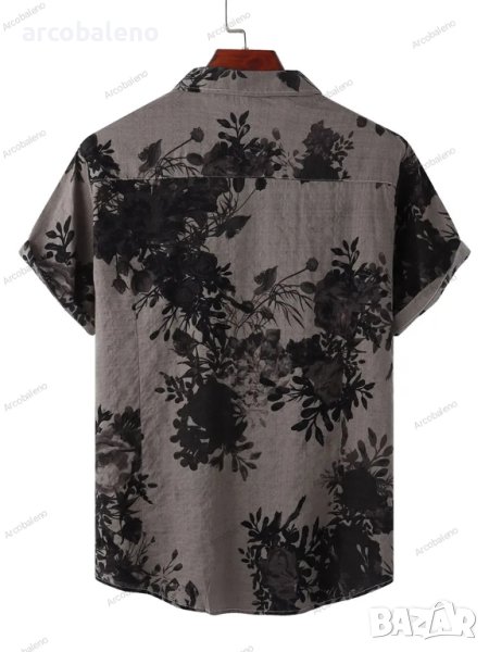 Мъжка памучна ежедневна риза с къс ръкав в плътен цвят, моден стил, мека и удобна материя.