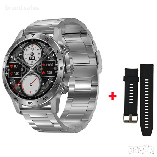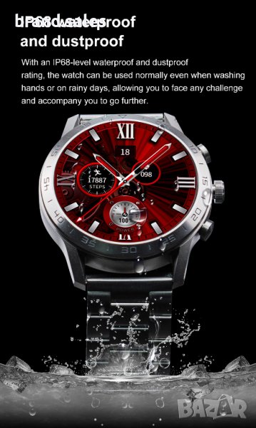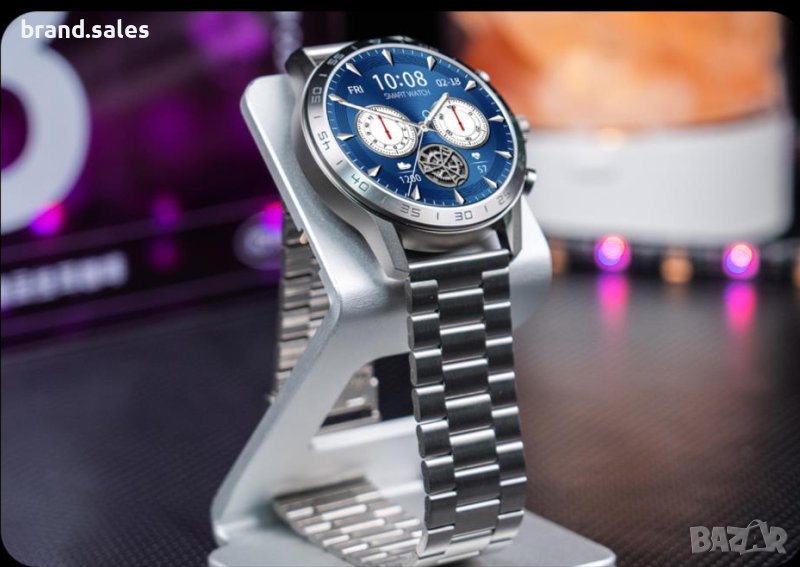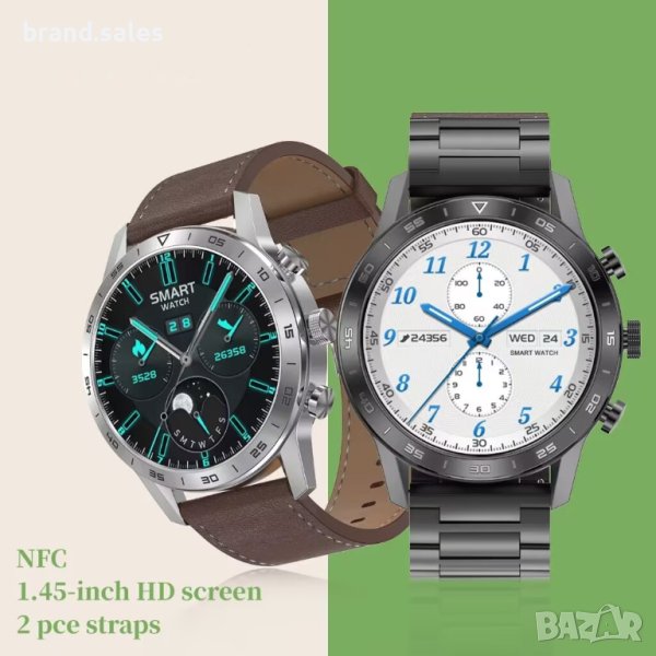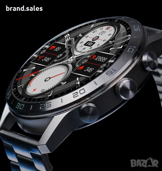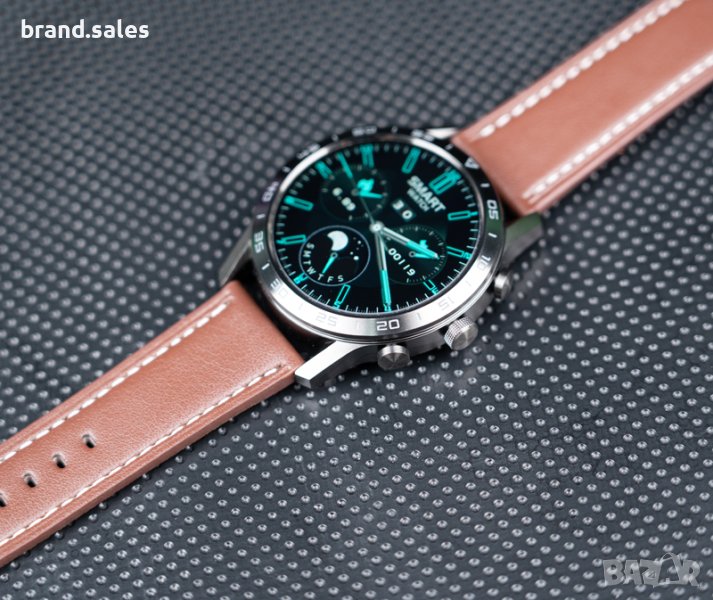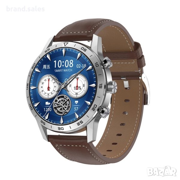 Модела разполага с голям 1.45-inch IPS HD дисплей 454*454px с висока разделителна способност,дълбок контраст и живи цветове .Модела е в комплект със силиконова и кожена верижка които се сменят много лесно в зависимост от стила на облеклото Ви.Часовника позволява приемане и провеждане на разговори през него.Чрез вибрацията с която разполага,никога няма да пропуснете важно съобщение от Messenger.WhatsApp и др.Смарт часовника разполага с множество функции като измерване на пулс,кислород в кръвта,сърдечен ритъм за цялото денонощие.Измерва кръвно налягане,стъпки,изминати километри и калории в различни спортни режими.Можете да правите снимки от часовника през