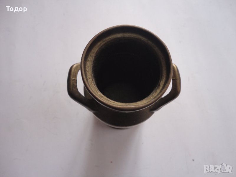 Направен от плътен бронз Височина 10,8 см Диаметър на дъното 5,5 см Тегло 292 гр Хубава патина Здрав Отлично състояние