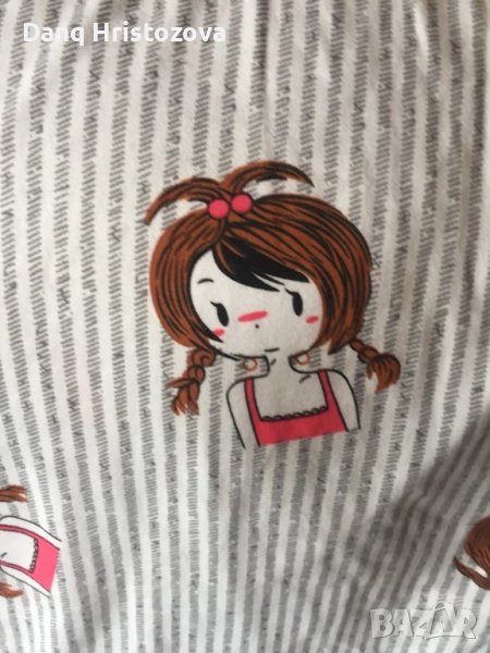 Нова, мека пижамка, в талията може да се регулира. Трико, има малка разтегливост.Измерено от мен- дълж от читала-67см,талия-32(едностранно),блузка- дълж-59,гръдна-45см- едностранно.
