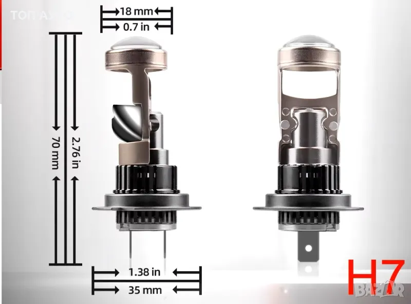 Изработени по най-нова технология ще превърнат повредения рефлекторен фар във фар с лупи, без да се налага да отваряте фара. Те са перфектното решение за подновяване на фаровете на автомобила, което може да монтирате буквално за броени минути. Осигуряват по-ярка светлина и подобрена видимост по време на шофиране. Крушките са направени от висококачествени материали и са създадени с помощта на високотехнологични процеси за постигане на максимална производителност и дълготрайност. Най-важната характеристика на LED крушките е фокусът на светлината, който се постига и най-трудно. Правилното фокусиране на светлинния лъч е много важно, защото не заслепяват насрещните шофьори по време на шофиране, цялата мощността на крушката се предава на пътя пред автомобила, директно пред капака или над пътната настилка и освен това няма нужда да регулирате отново крушките за къси и/или дълги светлини.