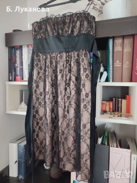 Сатенирана ест. коприна с черна дантела, много нежна и ефирна рокля за вечерно парти. Размер xs или 2 американско.