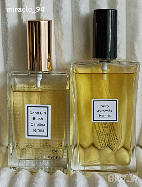 5/ "Good Girl Blush" - Carolina Herrera – в изпълнение на Заг Зодиак. Налични 75 мл. от 90 мл. Изключително харесван парфюм, женствен, траен и с добър шлейф. Пион, ванилия, бадем, иланг – иланг, бергамот и боб тонка. Всесезонен женствен аромат. Цена – 25 лв.