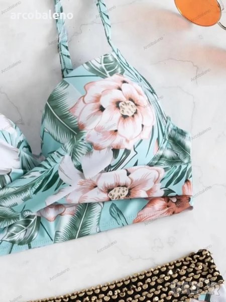 Дамски моден бански костюм от две части с принт на цветя, 2цвята
