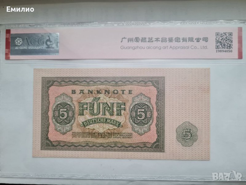 5 Д. Марки от 1955 год. Банкнотата е Сертифицирана от ACG С оценка 58 ABOUT UNC. ВИЖ СНИМКИТЕ.