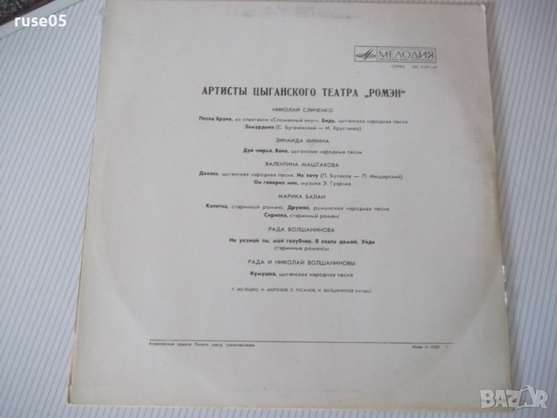Грамофонна плоча "Артисты цыганского театра *Ромэн*" → Обява 41229500