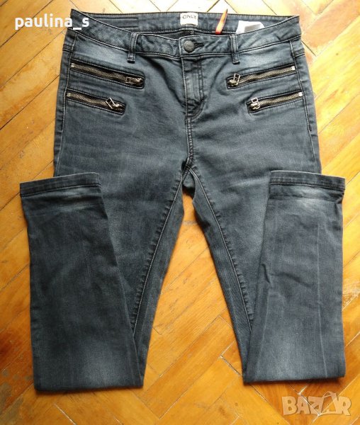 Поради новите правила за заплащане на обновяванията на обявите, моля разгледайте и последните страници на профила ми, обявите са активни и евтини. Еластични дънки в тъмно синьо с ципове "Only", платът е плътен и еластичен, нормална до леко ниска талия, няма дефекти, като нови.