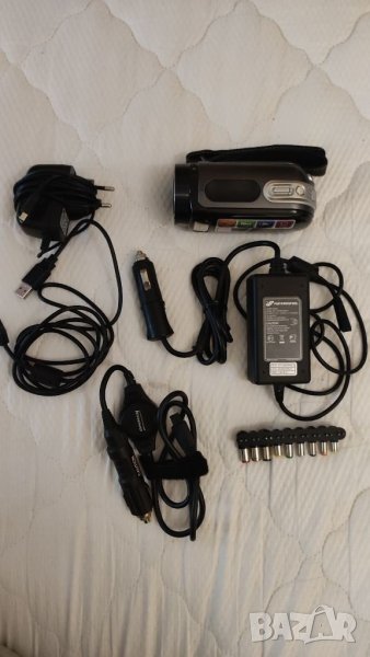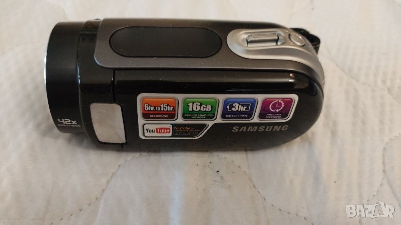 Видео камера SAMSUNG, пълен комплект кабели, зарядни и др. В отлично състояние, неразличима от нова с чанта, сак Targus. Няма забележки.