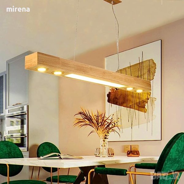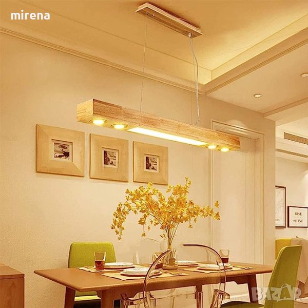 Висяща лампа Модерен LED полилей Дървена винтидж висяща лампа Маса за хранене Висяща лампа Ретро индустриална висяща лампа Регулируема по височина правоъгълник Офис Ресторант Топла светлина Декорация на тавана 120 см