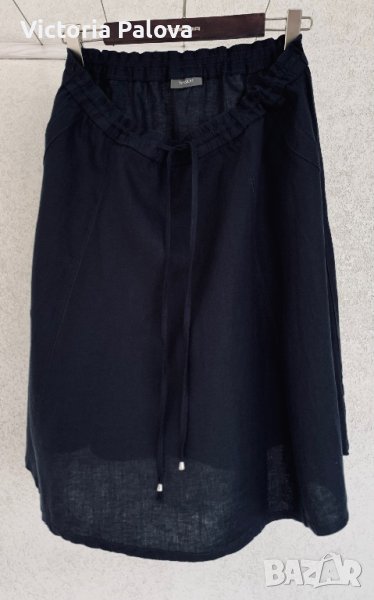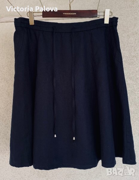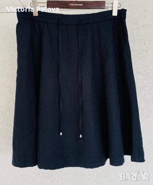 Полата е много красива и комфортна- тежък лен, пада на красиви фалди, талията е с ластик отзад, разтяга се до 50см едностранно, в неразтегнат вид е 46 см. Дължината е 61см.