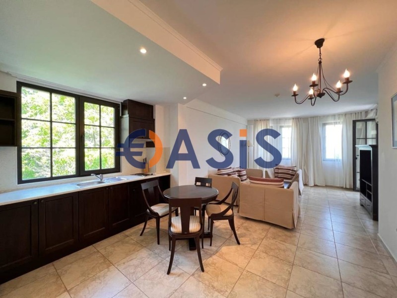 Апартаментът е много просторен и функционален, със следното разпределение входно антре, много голяма всекидневна с кухненски бокс и зона за хранене, тераса с уникална гледка към морето, две спални, баня с тоалетна и вана, баня с тоалетна и душ кабина. Продава се в отлично състояние, добре мебелиран и оборудван, готов за нанасяне.