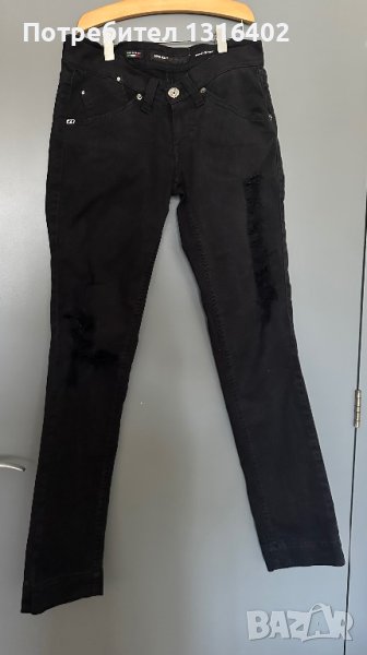 Дамски черни дънки с накъсан ефект, марка “Miss Sixty”, размер 29, размер М, ширина талия 40см, ханш 50см, дължина 103см.