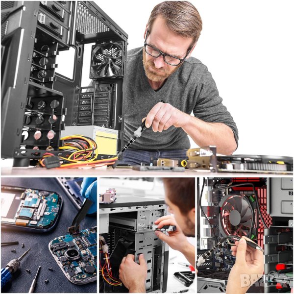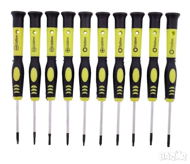 Комплекта включва разнообразие от отвертки с различни размери на главите и типове върхове, които ви позволяват да работите с различни видове винтове и завинтвания. Отвертките са изработени от здрави материали, което гарантира тяхната дълготрайност и надеждност.