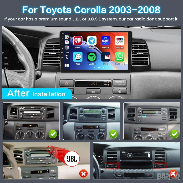 Мултимедия, за Toyota Corolla EX, Двоен дин, Навигация, Корола, 2 DIN, плеър, Android, Андроид, EX