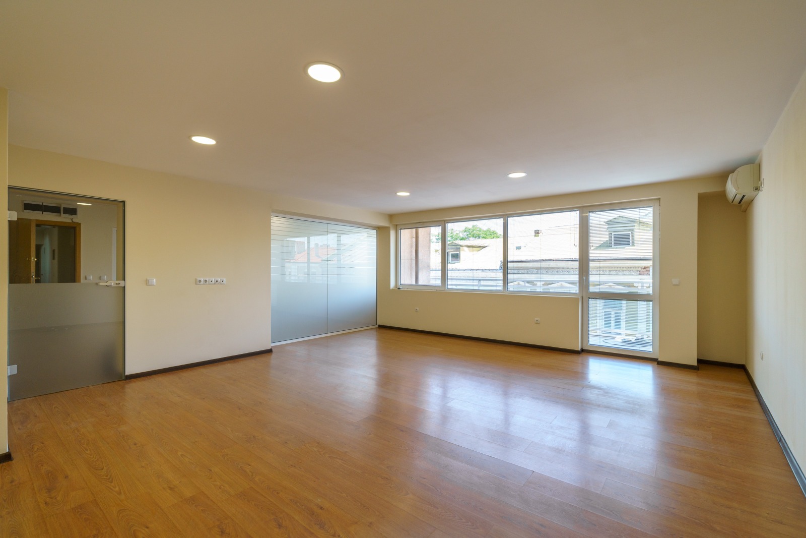 Офисът е с площ 118кв.м. и е разположен на 4ет.,източно изложение, отоплението и охлаждането на офисните помещения е решено с инвертори климатици.