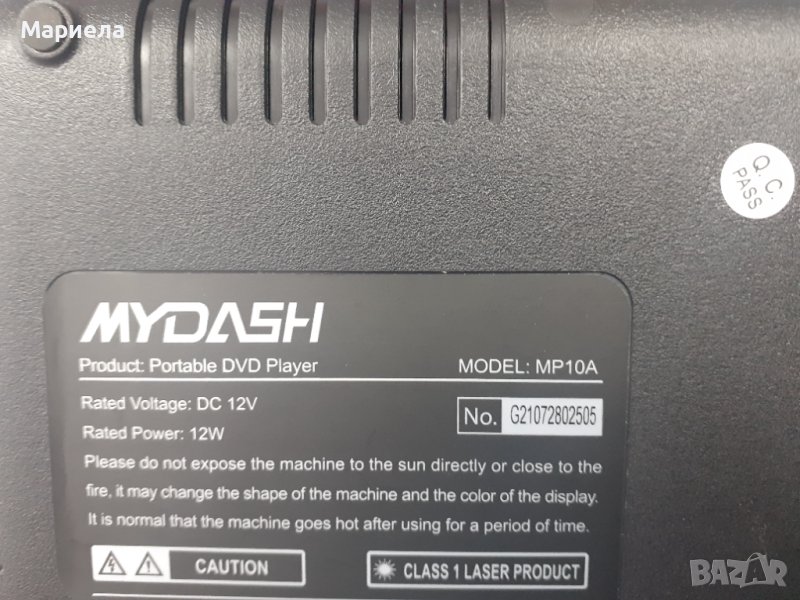 MYDASH MP10A преносим DVD плейър 10,1 инча черен , Портативен плейър с калъф