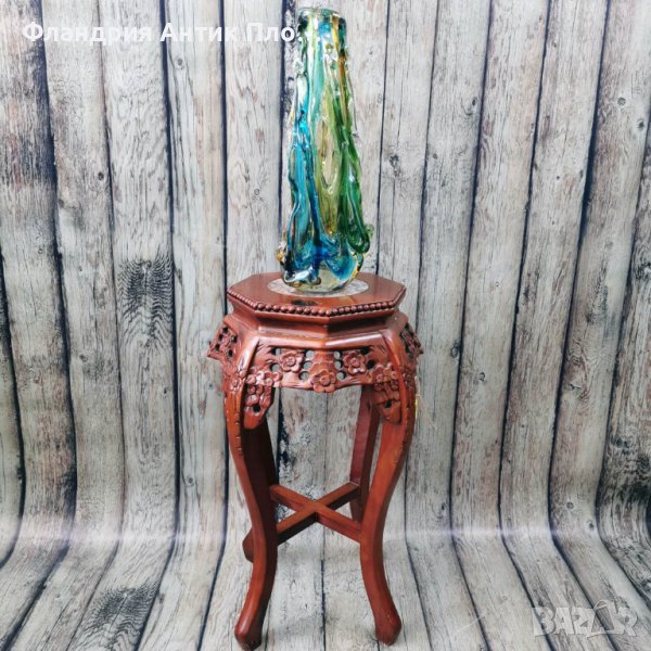 Тази голяма, ръчно изработена стъклена ваза е идеален избор за любителите на изкуството и стъклопластиката. Тя е перфектен декоративен елемент за дома, офиса или други интериорни пространства, който ще добави стил и елегантност на всяко място.