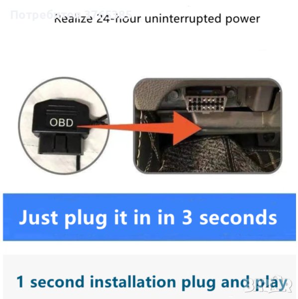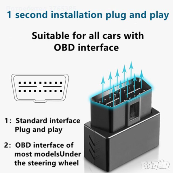 Включен към OBD порта на автомобила, заглушителя ще работи от 7 до 15 дни при изключен автомобил, в зависимост от капацитета на акумулатора.