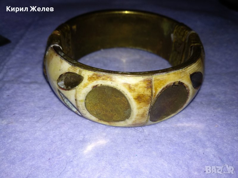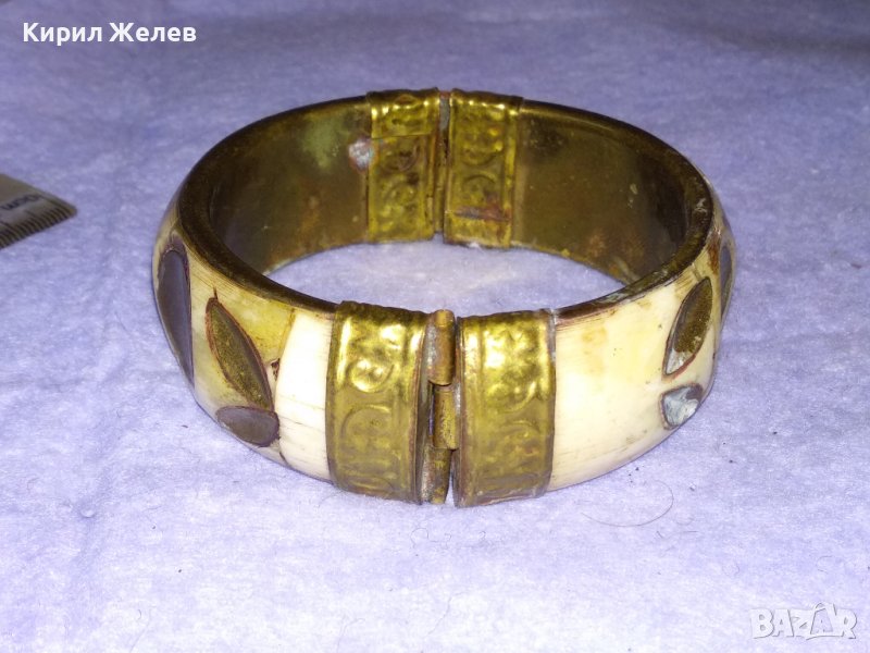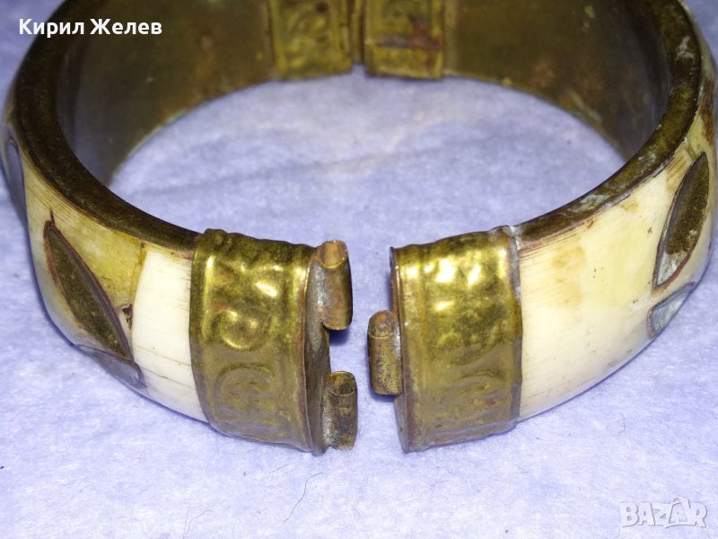 СТАРИННА БРОНЗОВА ТРАДИЦИОННА РЪЧНА ИЗРАБОТКА ТИБУТСКА ГРИВНА с КАМИЛСКА КОСТ с НУЖДА от ЩИФТ! 38336