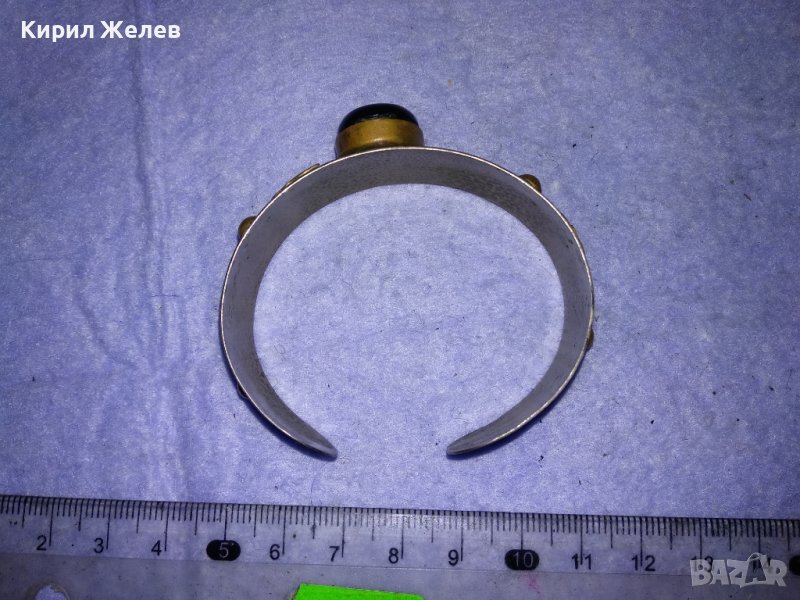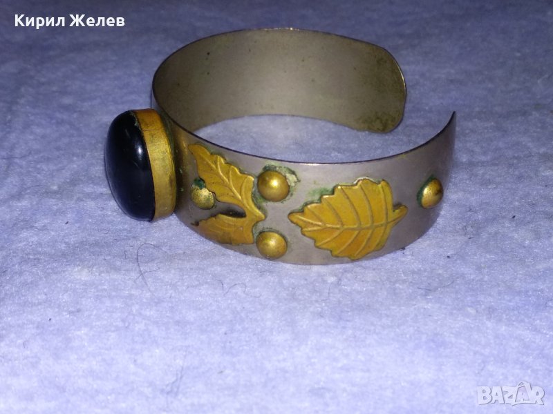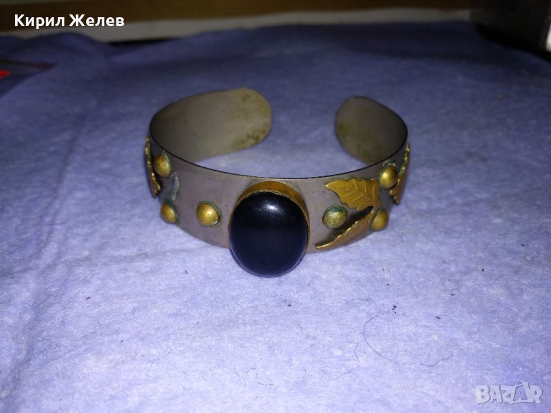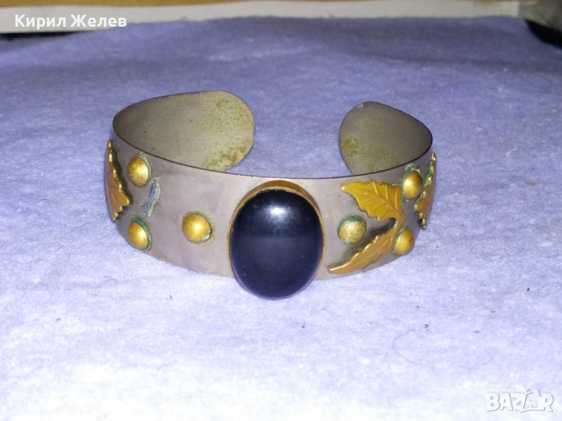 ВЕЛИКОЛЕПНА СКЪПОЦЕННА СРЕБРИСТА РЕТРО ГРИВНА от БРОНЗ и МЕД с ШЛИФАВАН РЪЧНО ЧЕРЕН ОНИКС 38348