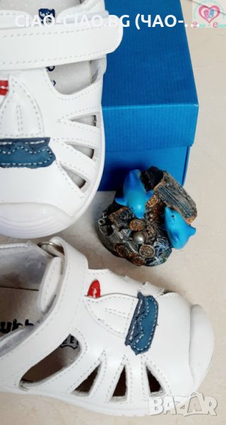 N19-24, Бебешки сандали за момче от Естествена кожа, бели с лодка BUBBLE KIDS