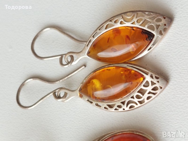 Продавам дамски,сребърни обеци с балтийски кехлибар → Обява 41268176