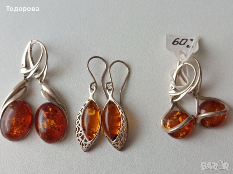 Продавам различни дамски,сребърни обеци с балтийски кехлибар на цена 60 лв.и 80 лв.