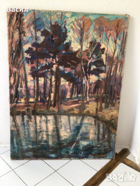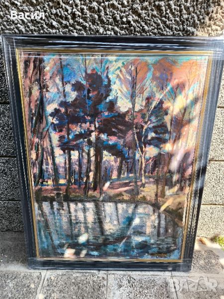 Херман Юнкер (1903-1985)"Ранна пролет при езерото" - масло/платно, 100 х 75 см, подписана долу вдясно. Заглавие и дата 1972 г. на обратната страна на рамката размер с рамка 114/88см