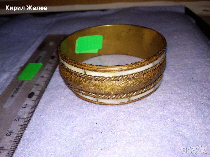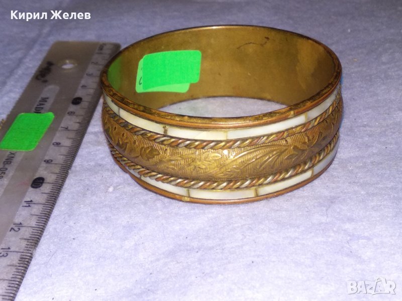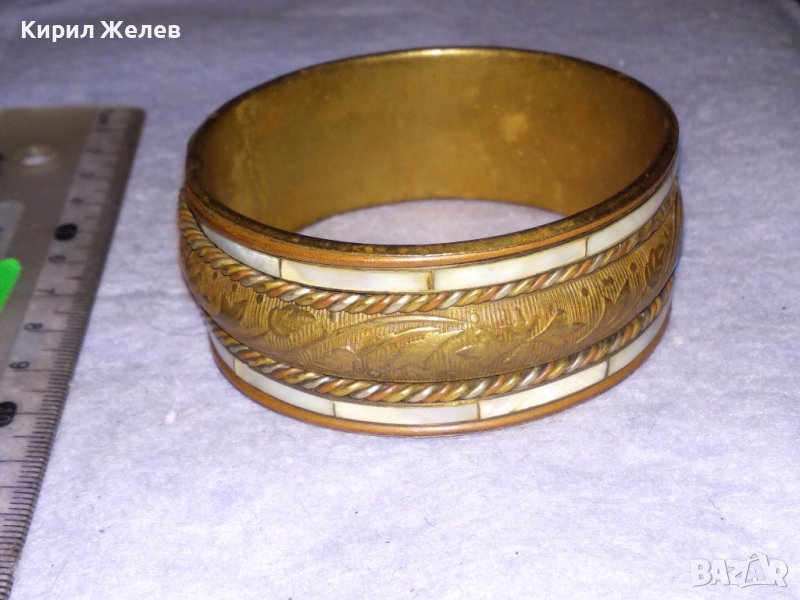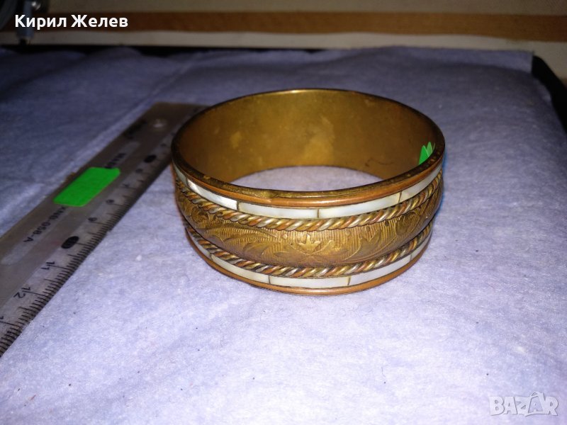 ПРЕВЪЗХОДНА СТАРА БРОНЗОВА ФЛОРАЛНО ОРНАМЕНТИРАНА СЕДЕФЕНА КЛАСИЧЕСКА РЕТРО ГРИВНА 70581