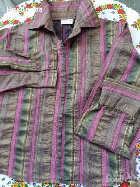Дамска риза с дълъг ръкав 40/42,сатен,с широки маншети.