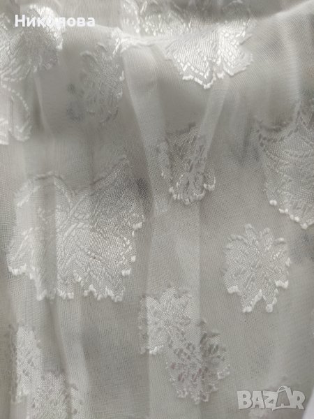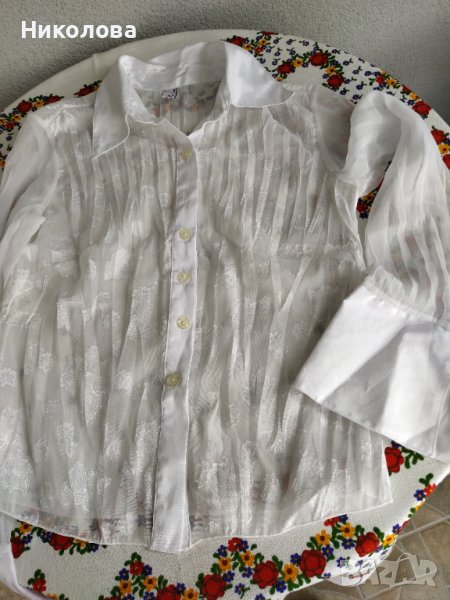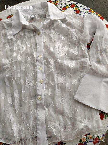 Бяла,прозрачна,официална риза с дълъг ръкав,с големи маншети без копчета.
