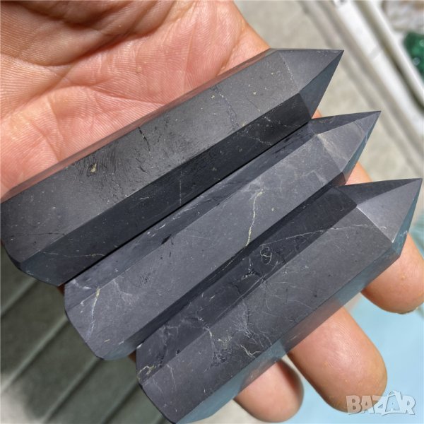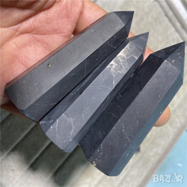 8-9см. Монолитно Парче Пирамидален Обелиск Висулка от Лечебен Шунгит Електромагнитна Защита Фулерени