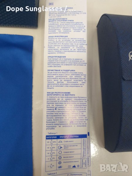 Тези слънчеви очила са в съответствие с Европейска Директива 89/686/EEС,съгласно стандарт EN ISO 12312-1:2013/A1:2015