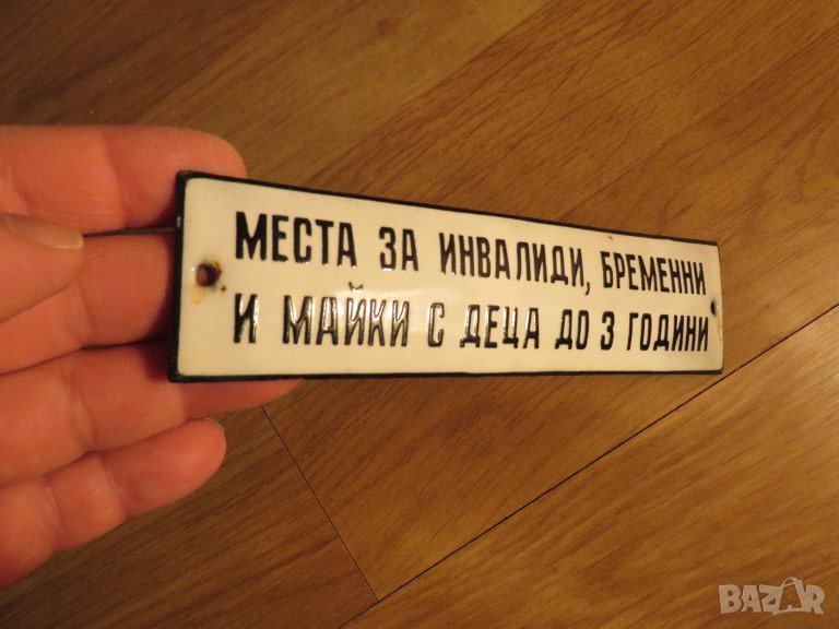 Рядка емайлирана табела МЯСТО ЗА ИНВАЛИДИ , БРЕМЕННИ И МАЛКИ С ДЕЦА ДО 3 ГОДИНИ от 70те - за вашия автобус, заведение, магазин или колекция