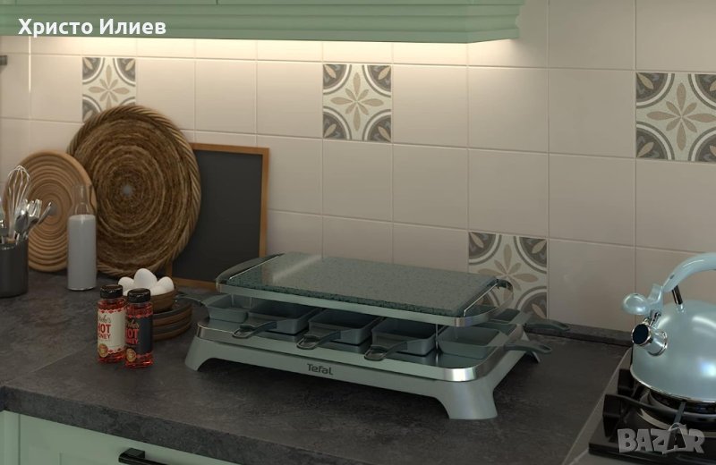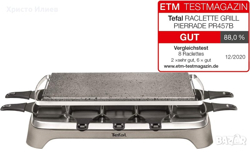 Раклет грил скара Tefal Pierrade PR457B от естестен камък с 10 тигана