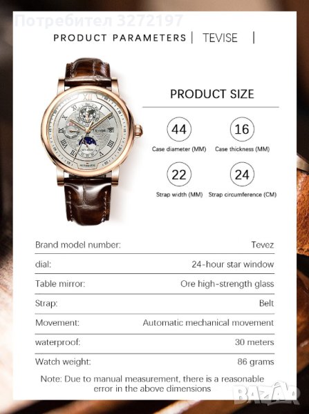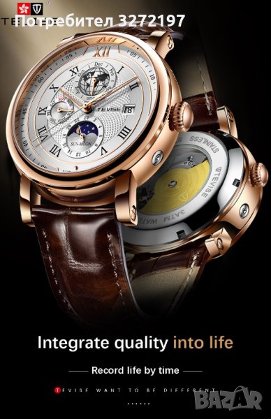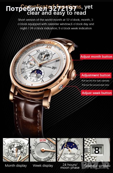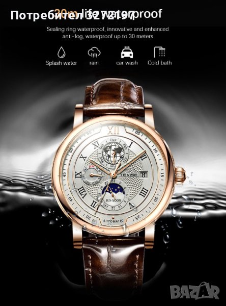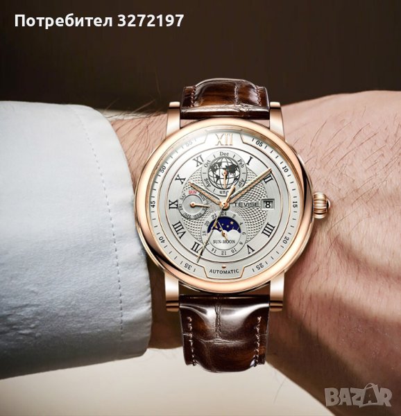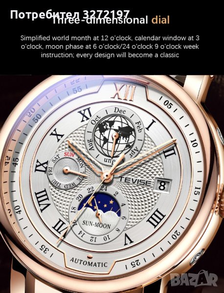 TEVISE - 2023 Автоматичен,масивен механичен ръчен часовник,функция ден и нощ,(показва с картинка ден/нощ на един от по-малките малките допълнителни циферблати),водоустойчив