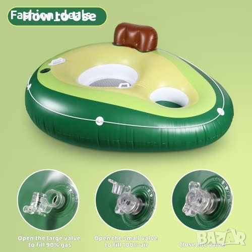 Поплавъкът може лесно да се надуе с помощта на пневматична помпа или електрическа въздушна помпа (не е включена в комплекта). Когато не се използва, може да се свали от въздуха, да се сгъне и да се съхранява удобно. Преносимостта му го прави отличен избор за пътуване и дейности на открито.Тази надуваема плувка за басейн е чудесен празничен подарък за празнуващите. Той е идеалният избор за летните ваканции и осигурява безкрайни забавления във водата.