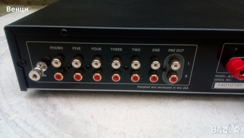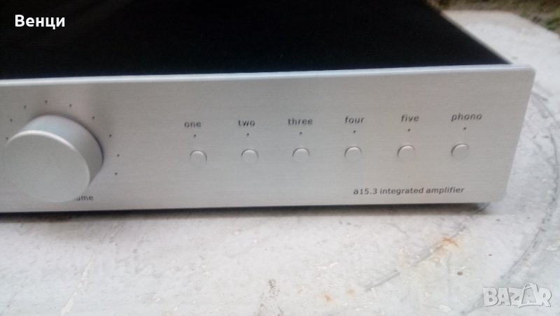 A15.3 е идеалният избор за някой, който иска да сглоби първата си аудио система от висок клас. Свързването на грамофон не може да бъде по-лесно с вградения фоно предусилвател с движещ се магнит. Усилвателят осигурява впечатляващите 50 вата/канал, което е достатъчно мощност за задвижване на повечето високоговорители на пазара. списък с характеристики високотоков 50 вата/канал усилвател ултра нисък шум предусилвател секция от полиран алуминий лицева плоча позлатени дебели стълбове за свързване на високоговорители 5 x аналогови стерео позлатени входове 1 x изход за предусилвател фоно вход с подвижен магнит 1 x 3,5 mm изход за слушалки 1 x 3,5 мм линеен вход на предния панел, специални подплатени крачета за гасене на вибрациите, мощен тороидален захранващ трансформатор с голям ток, твърдо шаси, превключваемо напрежение, подвижен захранващ кабел, система за дистанционно управление, черен панел + калъф, технически спецификации w17 x d14.3 x h3.1 в 19 lbs . опаковка Входна чувствителност: RCA: 330mV; Phono (MM): 1mV Изходна мощност: 50 WPC при 8 ома; 75 WPC @ 4ohm Предварителен изход: 660mV SNR: >90dB THD+N: