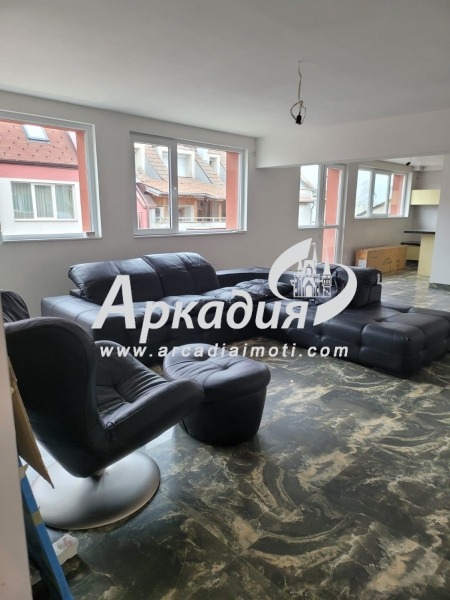 Просторна дневна с трапезария, отделен кухненска част, три големи спални, две бани,мокро помещение,голям склад и три тераси.