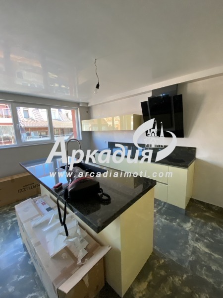 Кухнята е изработена от качествен клас материали и оборудвана с висок клас уреди. Предлага се частично обзаведен с нови поръчкови мебели. Големите прозорци и дограма допринасят за осветеността и светлината в апартамента. ИМОТЪТ Е ЗАВЪРШЕН ДО НАЙ-МАЛКИЯ ДЕТАЙЛ И НЕ СА ПЕСТЕНИ СРЕДСТВА!!!