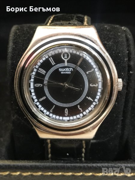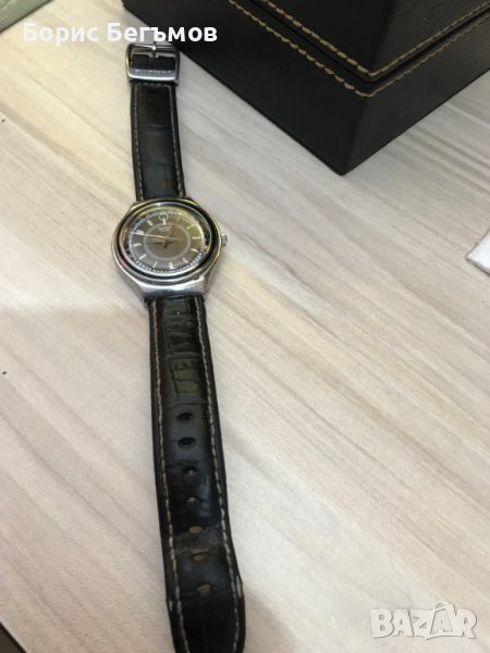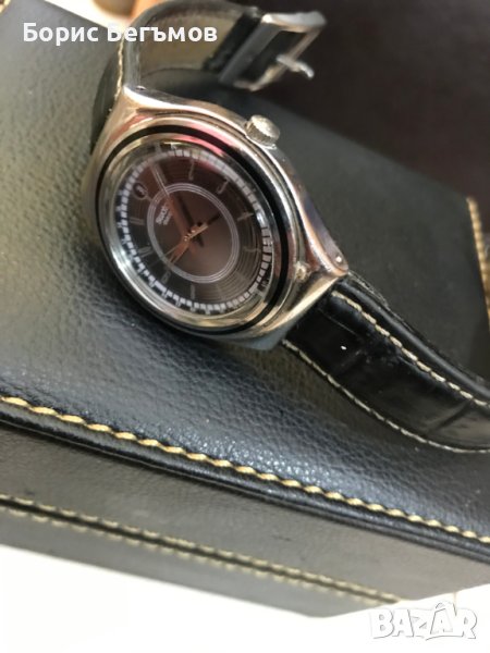 Продава много запазен точно работещ винтидж швейцарски мъжки ръчен часовник Swatch Irony . Кварцов механизъм, дата на 12 часа ,корпус от неръждаема стомана.Механизъм: SWISS кварцов "ETA" (захранване на батерията). Кожена каишка,оригинална тока на Суотч.100% оригинален.Часовника се предлага с чисто нова сребърна,не алкална батерия.Пращаме със спиди или еконт с преглед и тест след превод на капаро за куриерската услуга, поради зачестили некоректни потребители или най-добре- лично предаване.