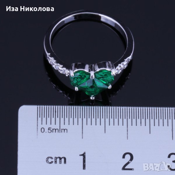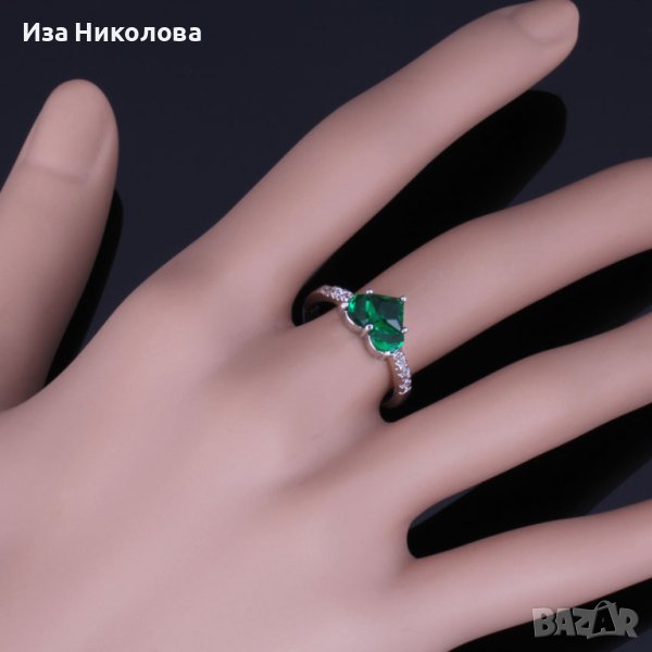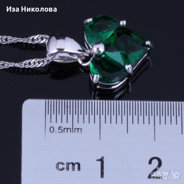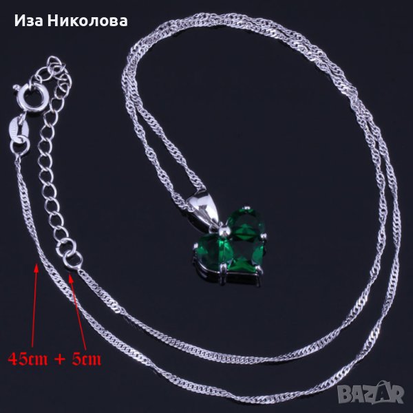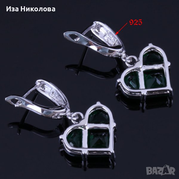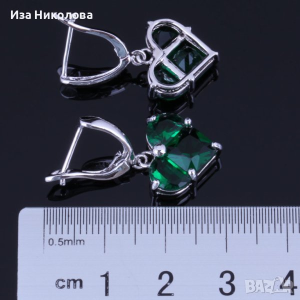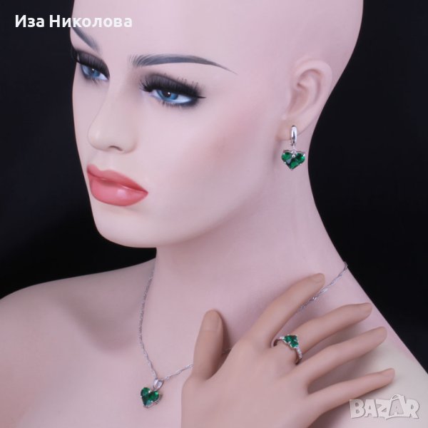 Сребърен комплект състоящ се от пръстен с размер 10, обици и колие със зелени смарагди / емералд / изумруд