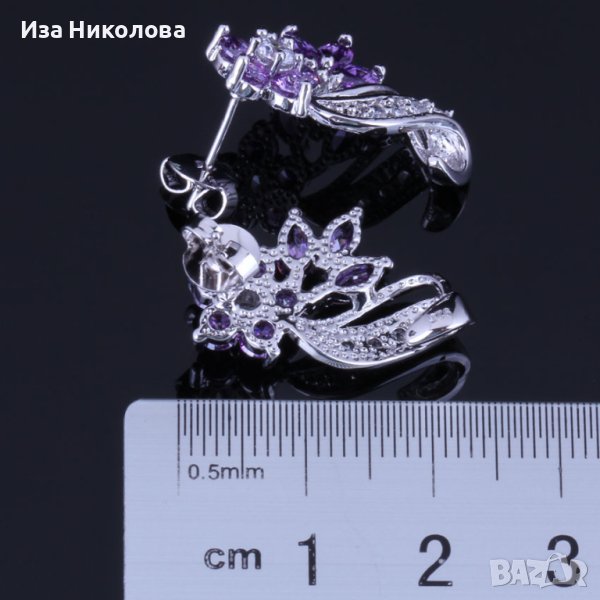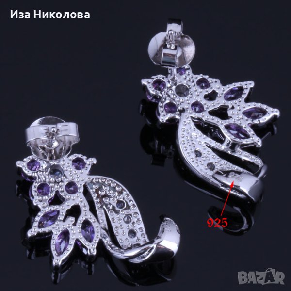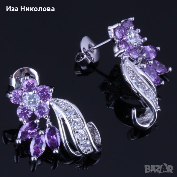 Сребърни обици с лилав или син сапфир, цената е за 1 брой!При закупуване на 2-та броя цената е 44.99лв