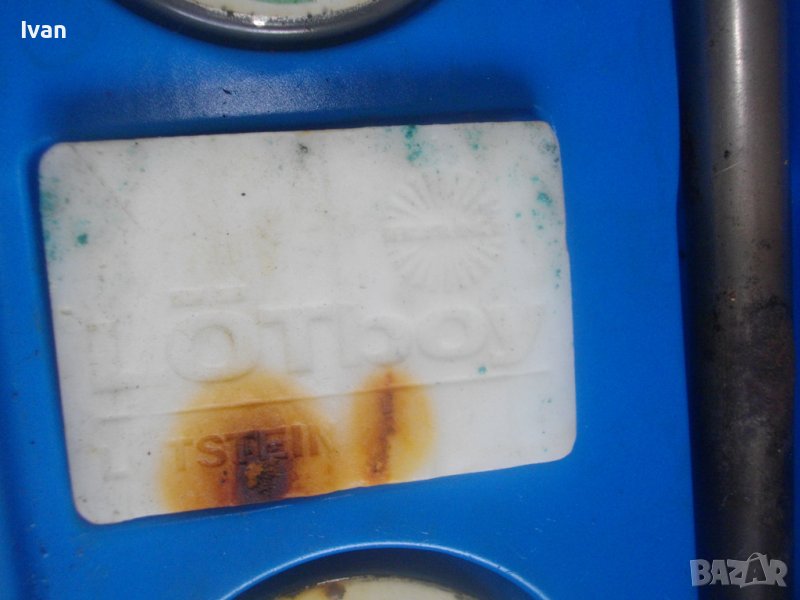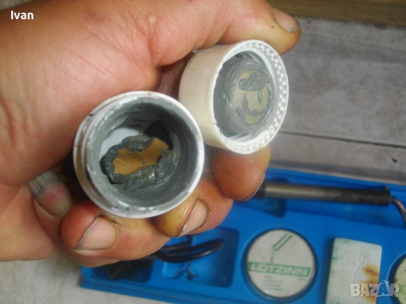 ОПИСАНИЕ на комплект ел.поялник в ПВЦ кутия - 129 лв. В оригиналната си немска ПВЦ кутия с прозрачно лице. Марка на поялника не е упомената, данни маркрани - 220 волта, 80 вата. Дължина 330 мм, Пластмасова дръжка, медна човка 40 мм с ширина 4 мм. Оригинален гумиран кабел, оригинален немски бакелит щепсел старо качество. В комплекта има метална стойка за самостоятелен стоеж, кутия метална LOTZIN с мек калай/тенол, кутия метална LOTFETT с колофон, 1 бр. оригинален LOTBOY калъп тип сапун за почистване на човката от калай. 1 бр. блстер шишенце с някаква паста за запояване, с нещо подобно на метален оксид. Комплектът е почти нов, много малко ползван, в отлично техническо/работно състояние.