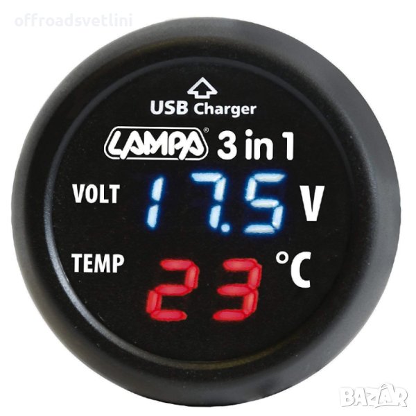 Мултифункционален дигитален уред 3 в 1 Волтметър Термометър и USB зарядно за автомобил 12V 24V