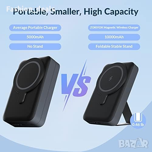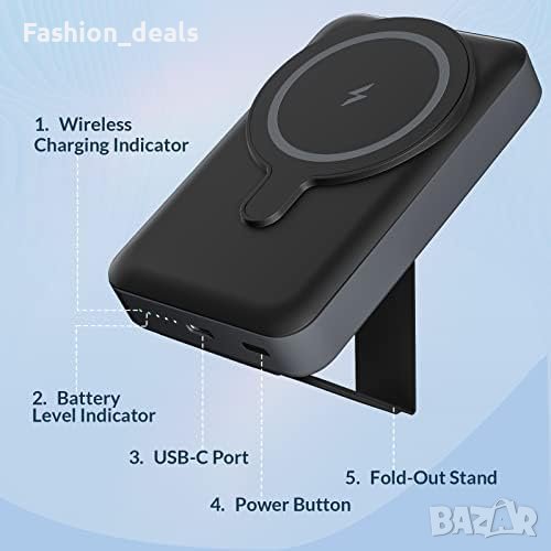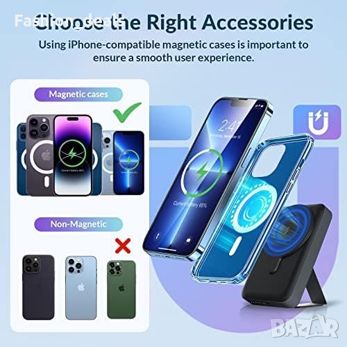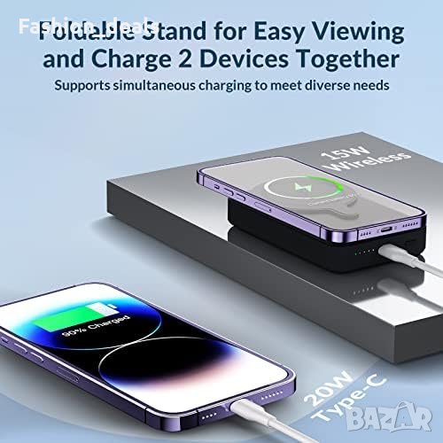 Включва вградена скоба, която ви позволява да позиционирате вашия iPhone 14/13/12 вертикално или хоризонтално за удобен ъгъл на гледане. Самата захранваща банка е лека и преносима, с тегло само 0,42 кг и размери 4,12,70,86 инча, което я прави удобна за носене и използване за разговори, селфита и др.