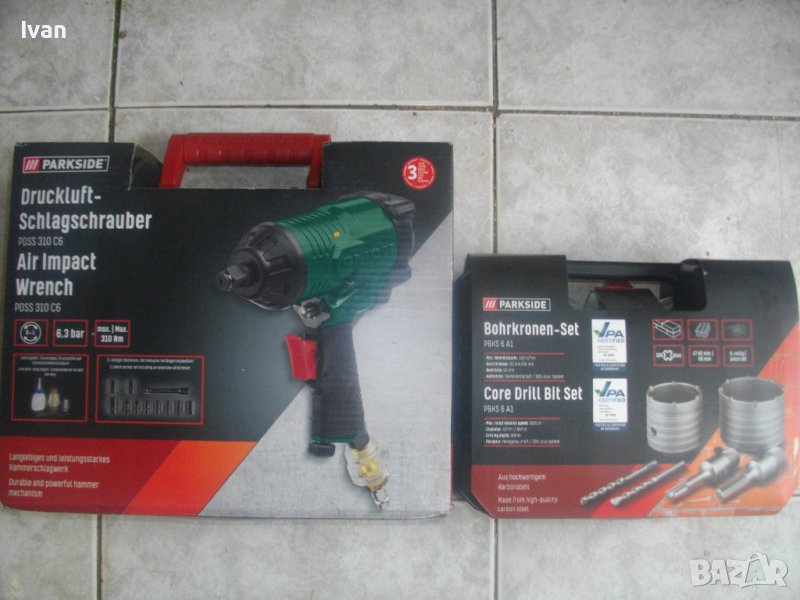 Нови Немски:Пневматичен Гайковерт 310Nm/Комплект Диамантени Боркорони Пробив Бетон-68-82мм-PARKSIDE