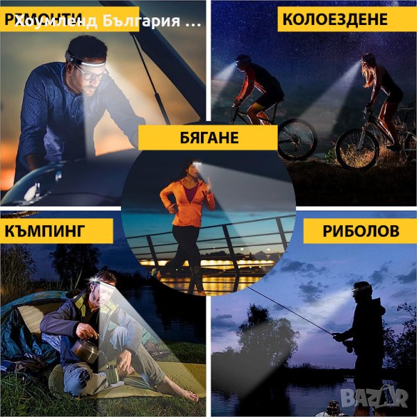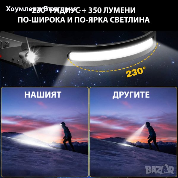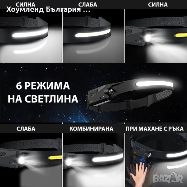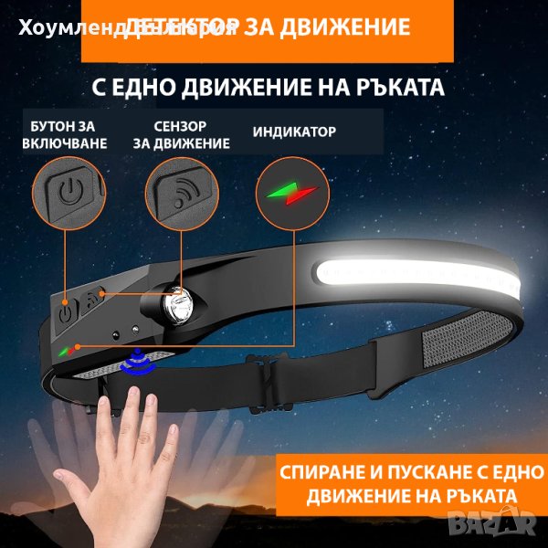 Супер мощен челник 350lum с 4 режима и сензор за движение