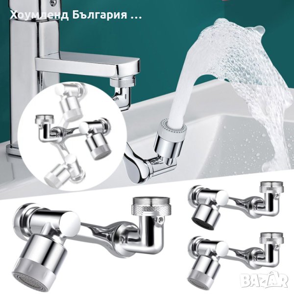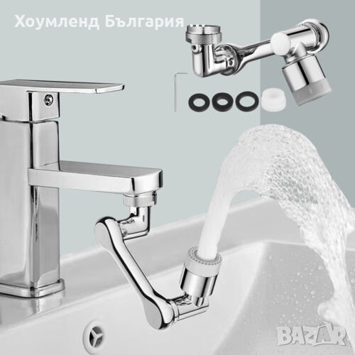 Накрайник за чешма с ротация 1080 градуса във всички посоки. Много удобен за ползване на къса или ниска чешма. С него бързо, лесно хигиенично се измивате и дори спестяваме от сметки за вода. Не само това, но и използвате по-виста питейна вода.