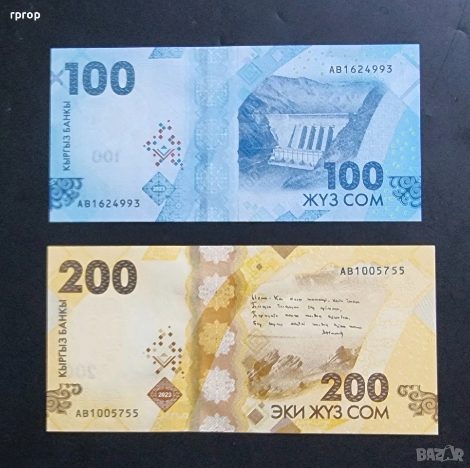 Киргизстан. 100 и 200 сом . 2023г. Нова емисия. UNC. → Обява 41320665